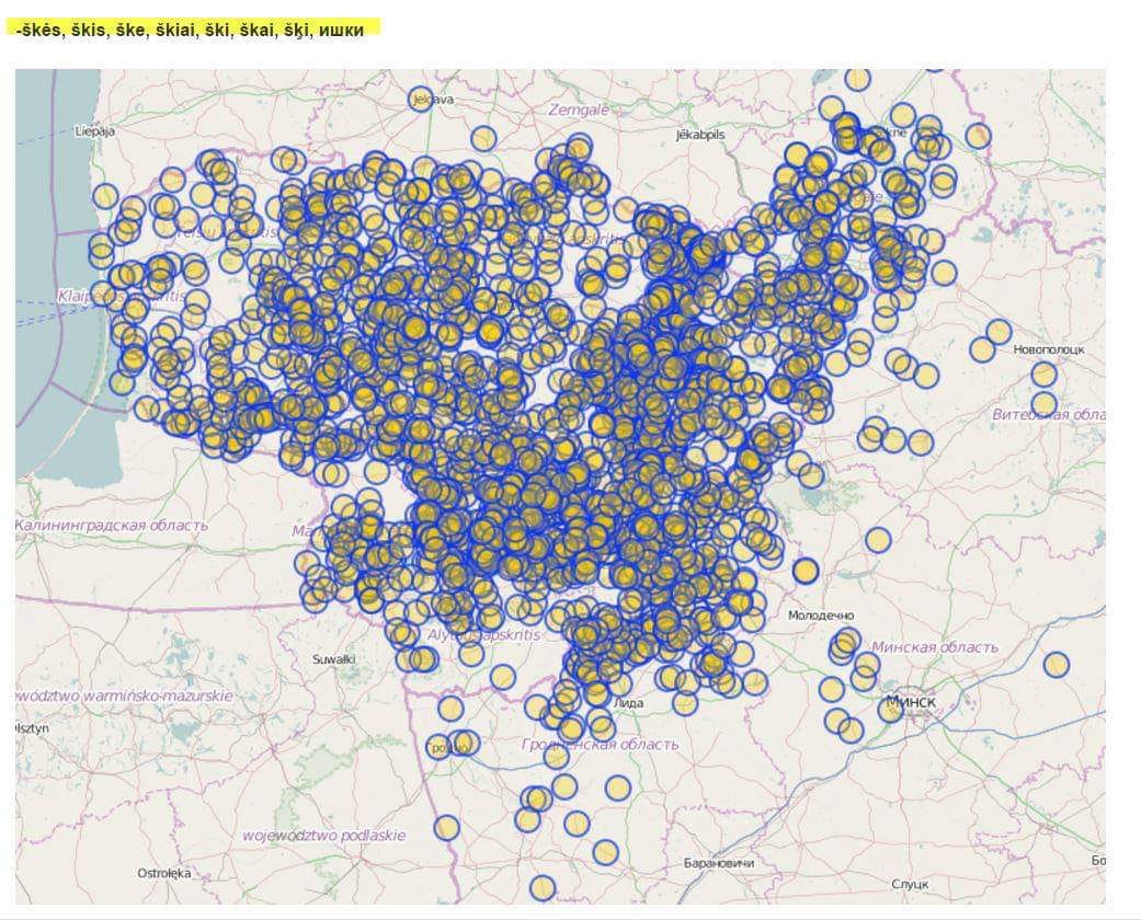 Lietuvos ir iki šiol išlikę Vakarų Baltarusijos miestelių pavadinimai su -škės, -škis, -škė, -škiai, -ški, -škai, -iški parodo jų baltišką kilmę